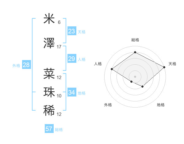 米澤 菜珠稀さんを姓名の画数から五運を鑑定