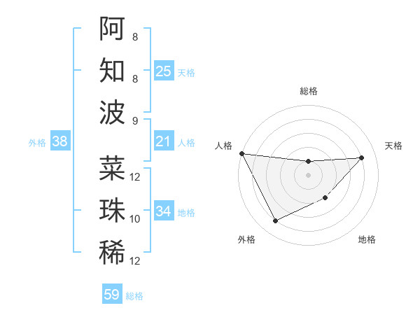 阿知波 菜珠稀さんを姓名の画数から五運を鑑定
