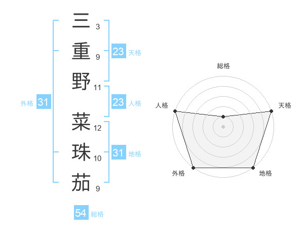 三重野 菜珠茄さんを姓名の画数から五運を鑑定