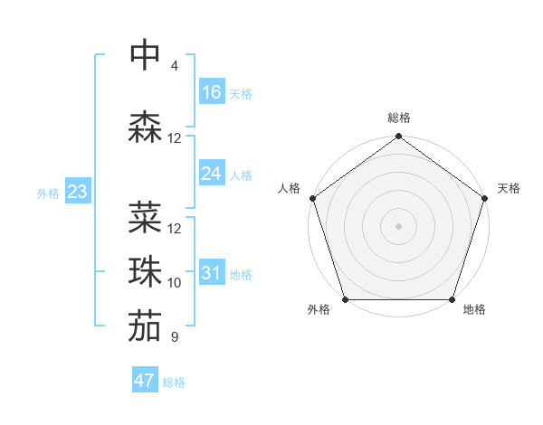 中森 菜珠茄さんを姓名の画数から五運を鑑定
