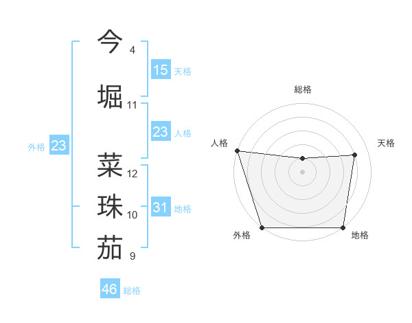 今堀 菜珠茄さんを姓名の画数から五運を鑑定