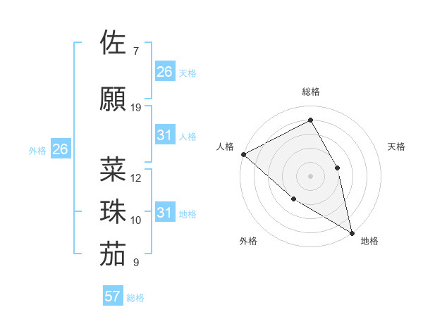 佐願 菜珠茄さんを姓名の画数から五運を鑑定