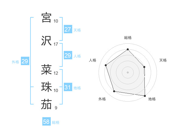 宮沢 菜珠茄さんを姓名の画数から五運を鑑定