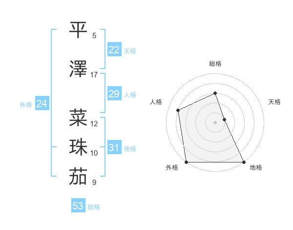 平澤 菜珠茄さんの総格は53画の3点!