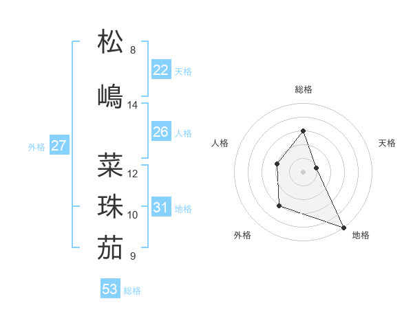 松嶋 菜珠茄さんを姓名の画数から五運を鑑定