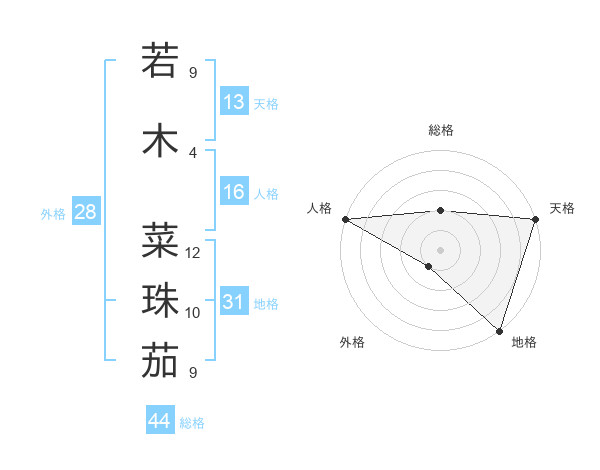 若木 菜珠茄さんを姓名の画数から五運を鑑定