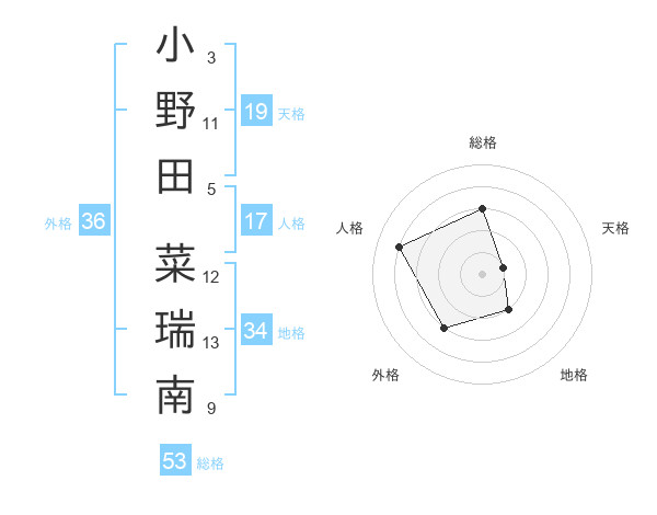 小野田 菜瑞南さんを姓名の画数から五運を鑑定