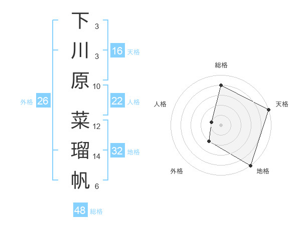 下川原 菜瑠帆さんを姓名の画数から五運を鑑定