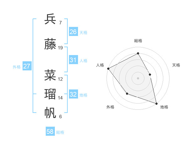 兵藤 菜瑠帆さんの天格は26画の2点!