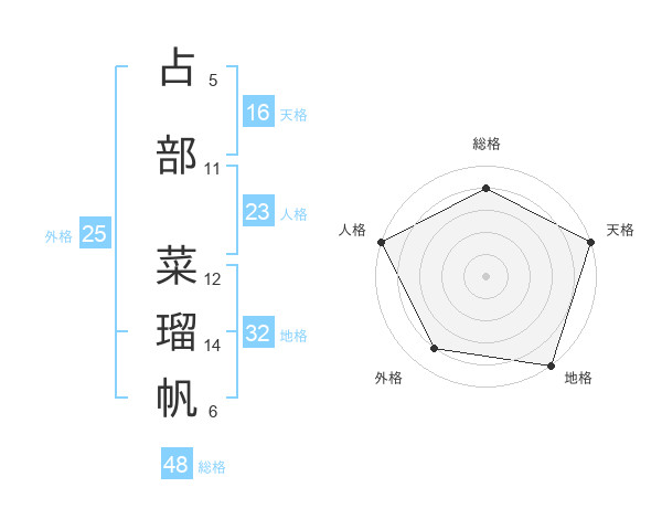 占部 菜瑠帆さんを姓名の画数から五運を鑑定