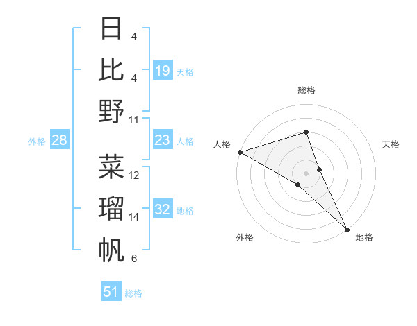 日比野 菜瑠帆さんを姓名の画数から五運を鑑定