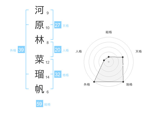 河原林 菜瑠帆さんを姓名の画数から五運を鑑定