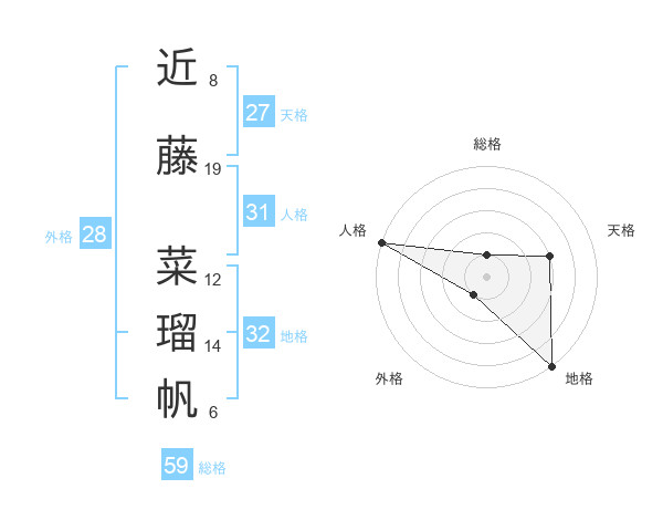 近藤 菜瑠帆さんを姓名の画数から五運を鑑定