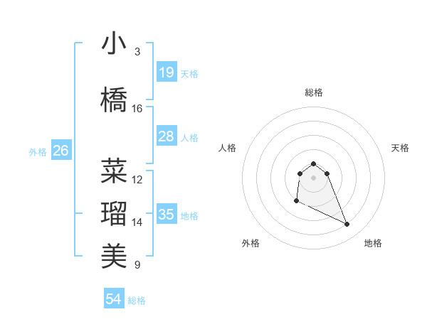 小橋 菜瑠美さんを姓名の画数から五運を鑑定