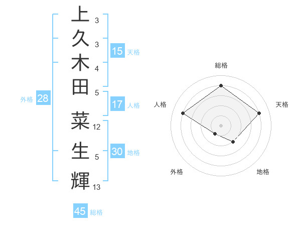 上久木田 菜生輝さんを姓名の画数から五運を鑑定