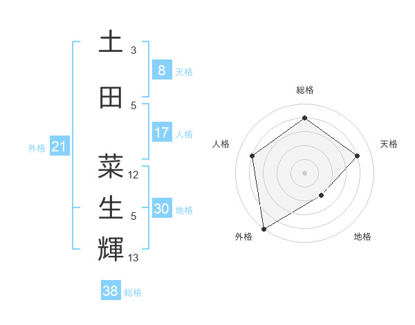 土田 菜生輝さんを姓名の画数から五運を鑑定