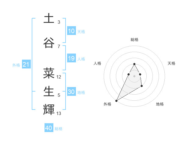 土谷 菜生輝さんを姓名の画数から五運を鑑定
