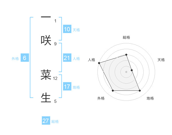 一咲 菜生さんを姓名の画数から五運を鑑定