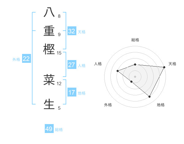八重樫 菜生さんの総格は49画の2点!