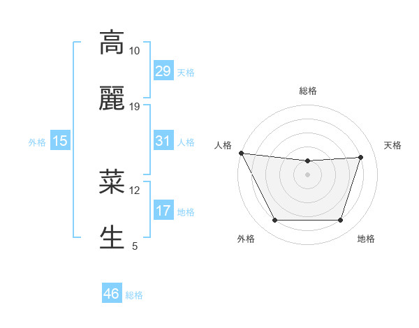 高麗 菜生さんの総格は46画の1点!