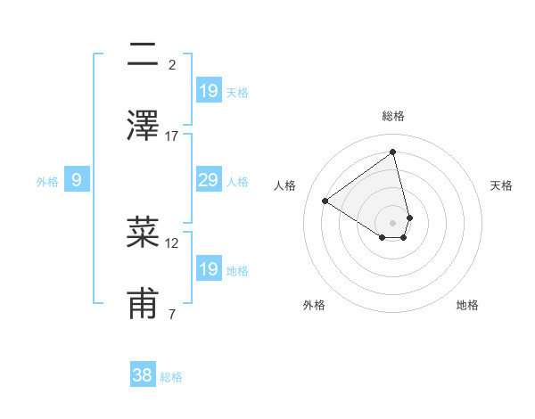 二澤 菜甫さんの総格は38画の4点!