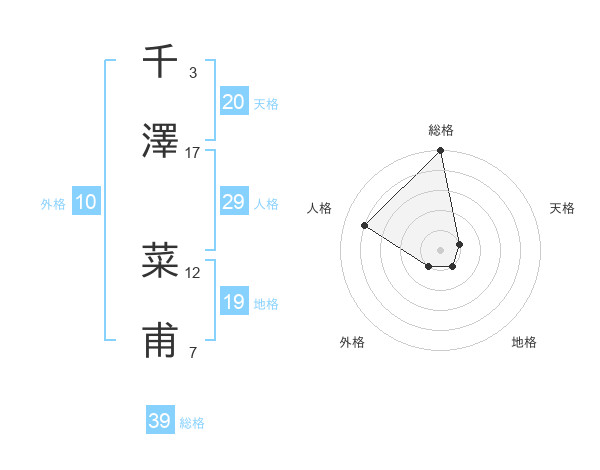 千澤 菜甫さんを姓名の画数から五運を鑑定