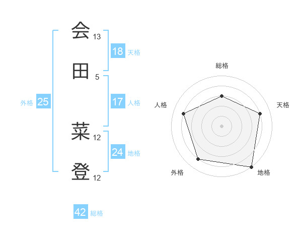占い結果は姓名判断である以上、良い場合も悪い場合もありますが、決してお名前を誹謗中傷するものでなく、画数の自動計算によって得られたものです。また、本サイトの検索によって得られた鑑定結果で、第三者を誹謗中傷したり名誉を棄損するような行為を禁じます。