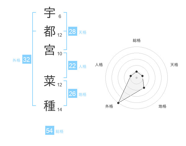 宇都宮 菜種さんの外格は32画の5点!