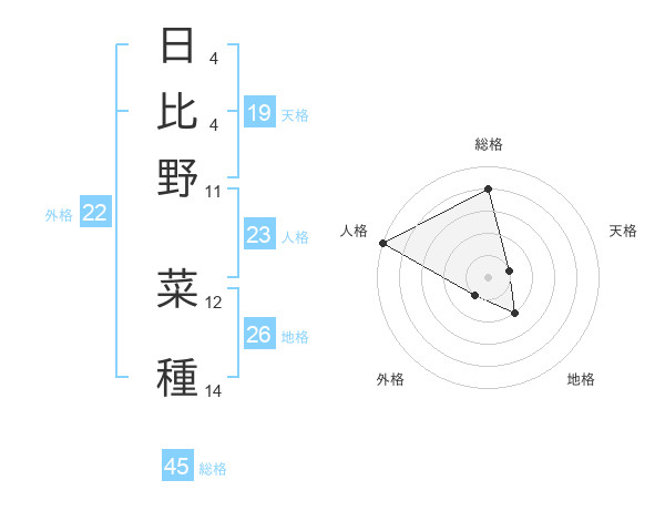 日比野 菜種さんの総格は45画の4点!