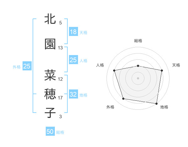 北園 菜穂子さんを姓名の画数から五運を鑑定