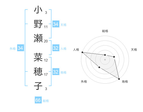 小野瀬 菜穂子さんを姓名の画数から五運を鑑定