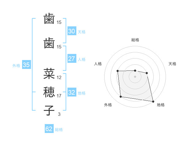 歯歯 菜穂子さんの外格は35画の4点!