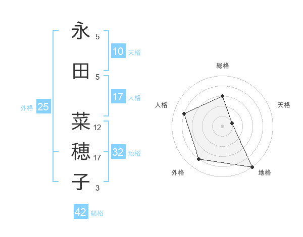 永田 菜穂子さんを姓名の画数から五運を鑑定