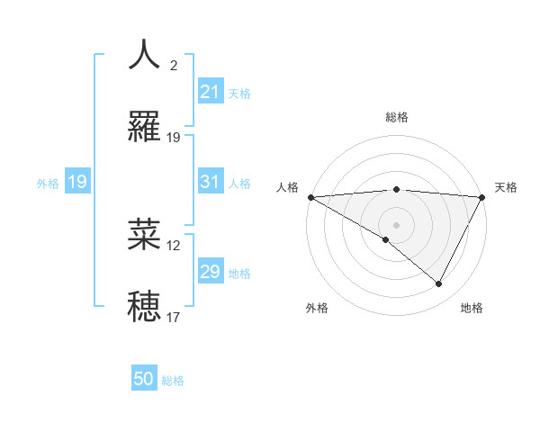 人羅 菜穂さんの総格は50画の2点!