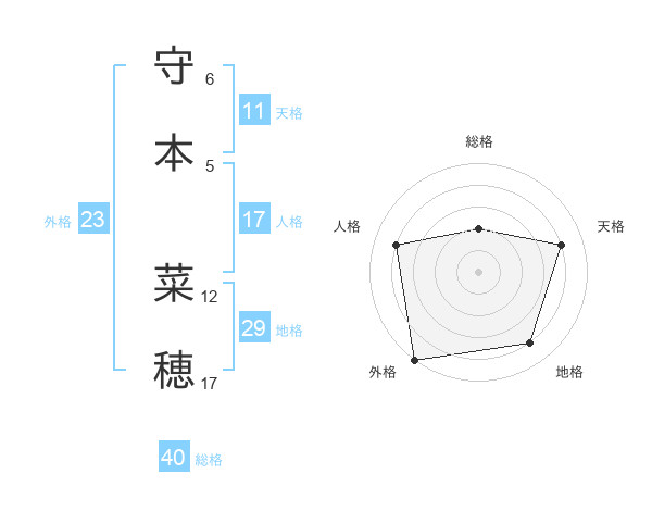 守本 菜穂さんの外格は23画の5点!