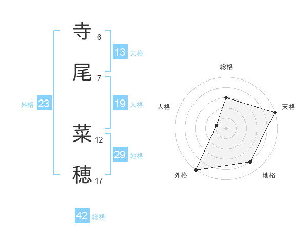 寺尾 菜穂さんの天格は13画の5点!