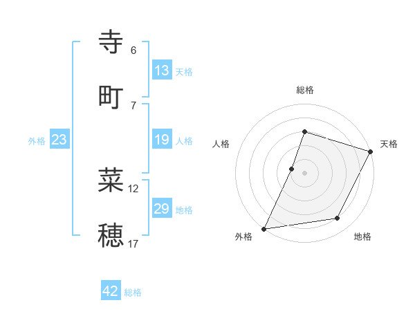 寺町 菜穂さんの天格は13画の5点!