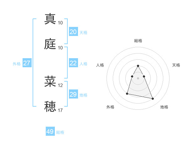 真庭 菜穂さんの総格は49画の2点!