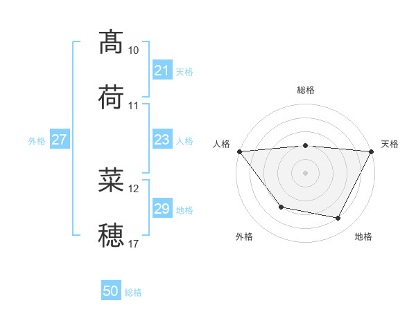 髙荷 菜穂さんの総格は50画の2点!