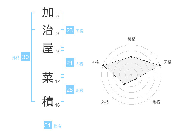 加治屋 菜積さんを姓名の画数から五運を鑑定