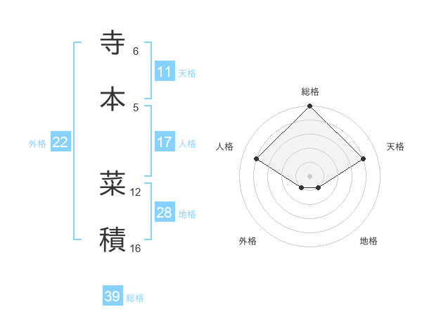 寺本 菜積さんの総格は39画の5点!