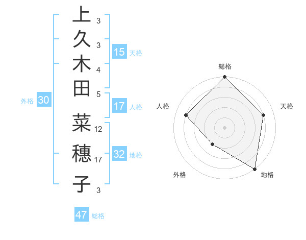 上久木田 菜穗子さんを姓名の画数から五運を鑑定