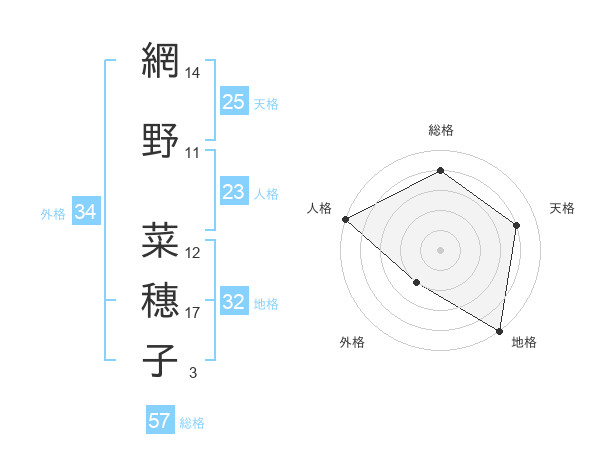網野 菜穗子さんを姓名の画数から五運を鑑定