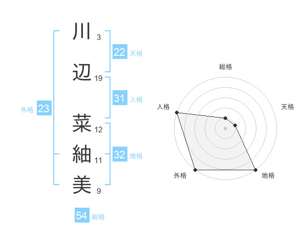 川辺 菜紬美さんの外格は23画の5点!