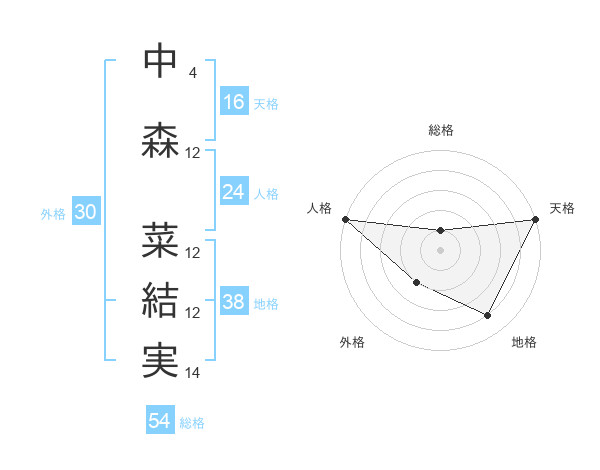 中森 菜結実さんの地格は38画の4点!