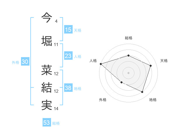 今堀 菜結実さんを姓名の画数から五運を鑑定