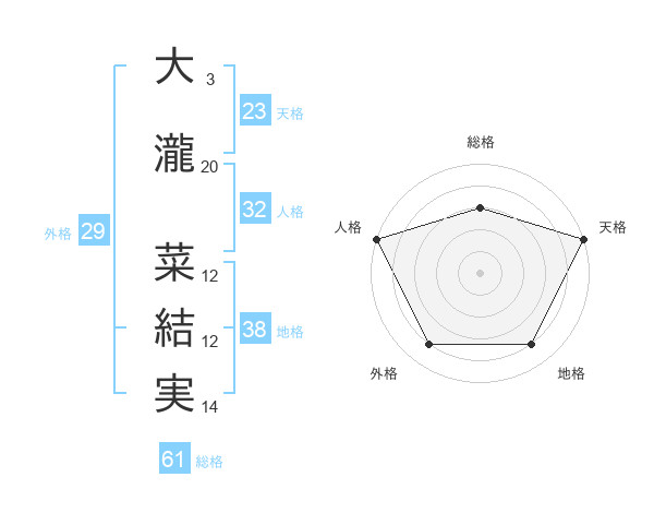 大瀧 菜結実さんを姓名の画数から五運を鑑定