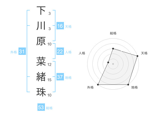 下川原 菜緒珠さんの総格は53画の3点