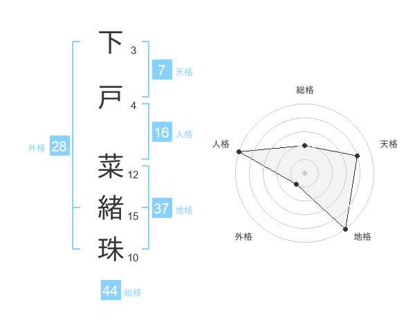下戸 菜緒珠さんを姓名の画数から五運を鑑定