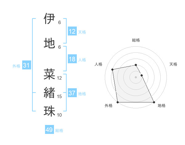 伊地 菜緒珠さんの地格は37画の5点!